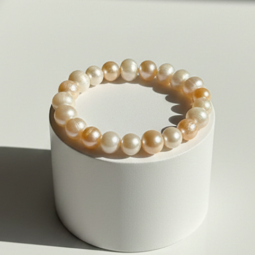 White and Peach color Freshwater Pearls Bracelet