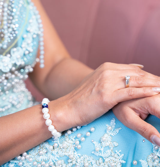 Single Layer Bracelets with deep blue and white evil eye (Nazar) - 9 mm Pearls