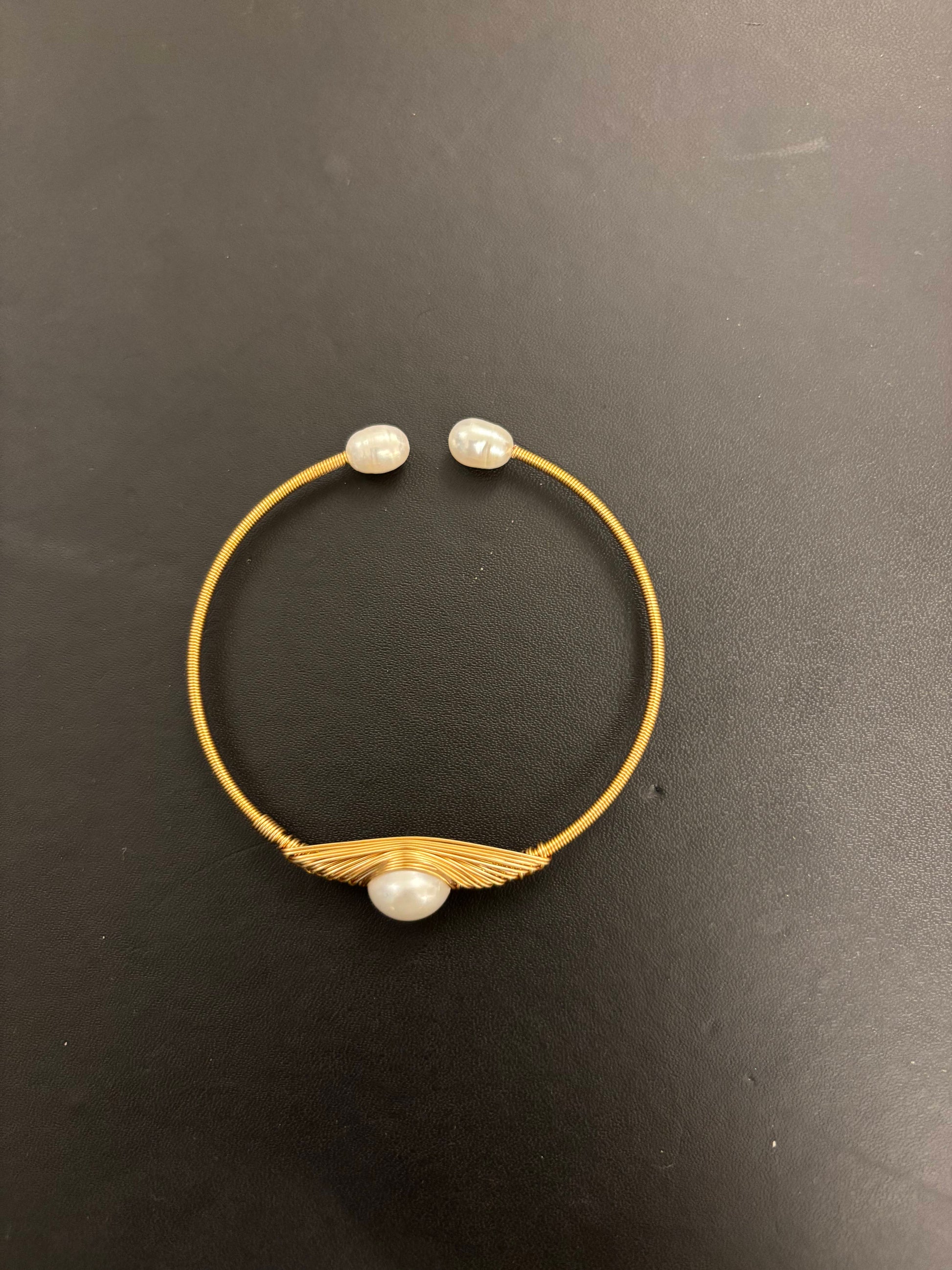 - Package Includes: 1 x Golden Wire-Wrapped Pearl Cuff Bracelet