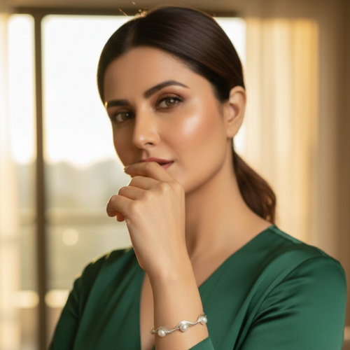 This bracelet is a true testament to artisan skill. Its cool silver tone and classic white pearls make it a versatile statement piece that transitions effortlessly from day to elegant evening wear.