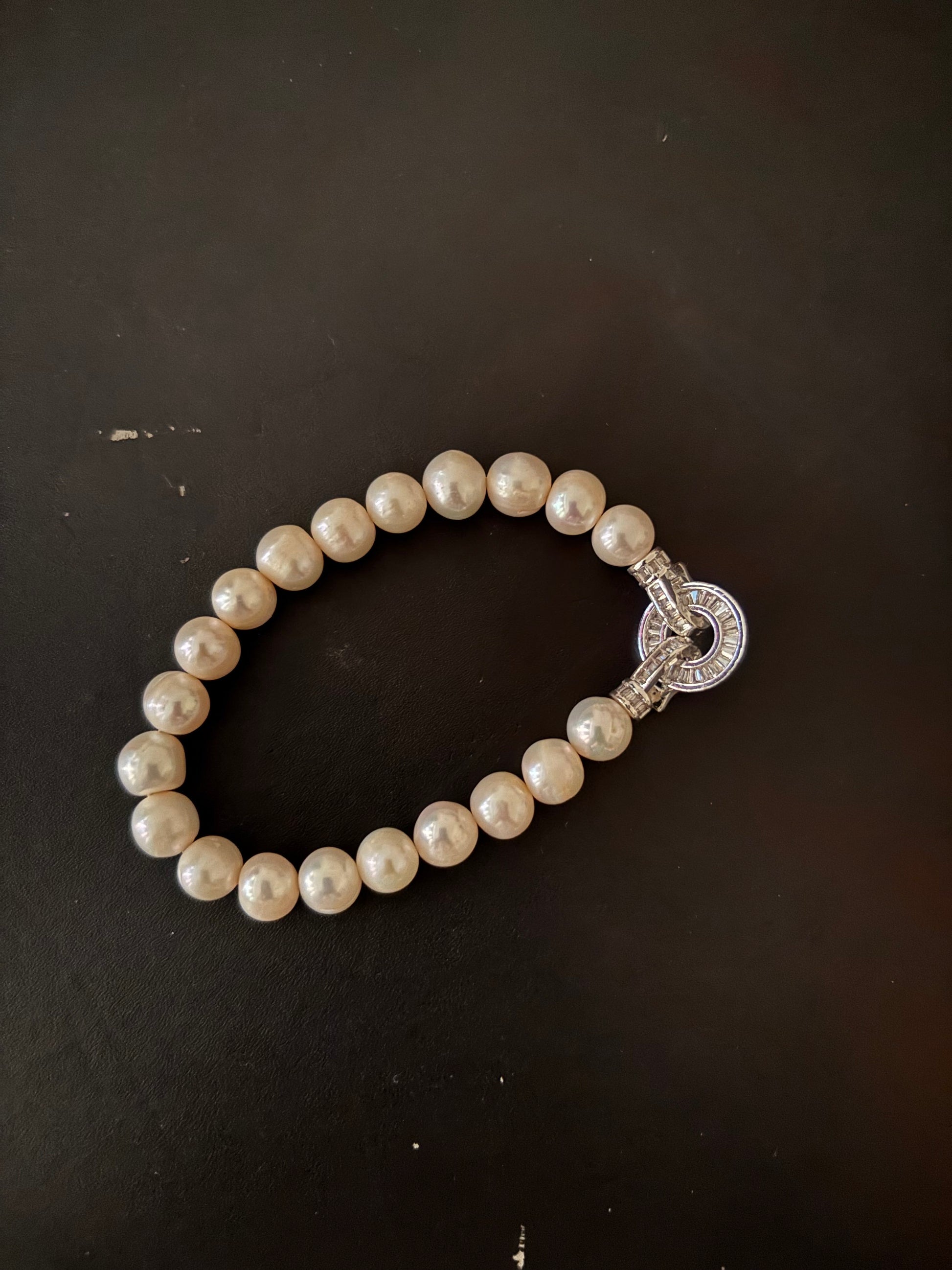 · The lustrous pearls catch the light, creating a mesmerizing glow that will make you the center of attention. Whether you're dressing up for a formal event or simply want to add a touch of sophistication to your everyday look, this bracelet is a versatile and timeless choice.