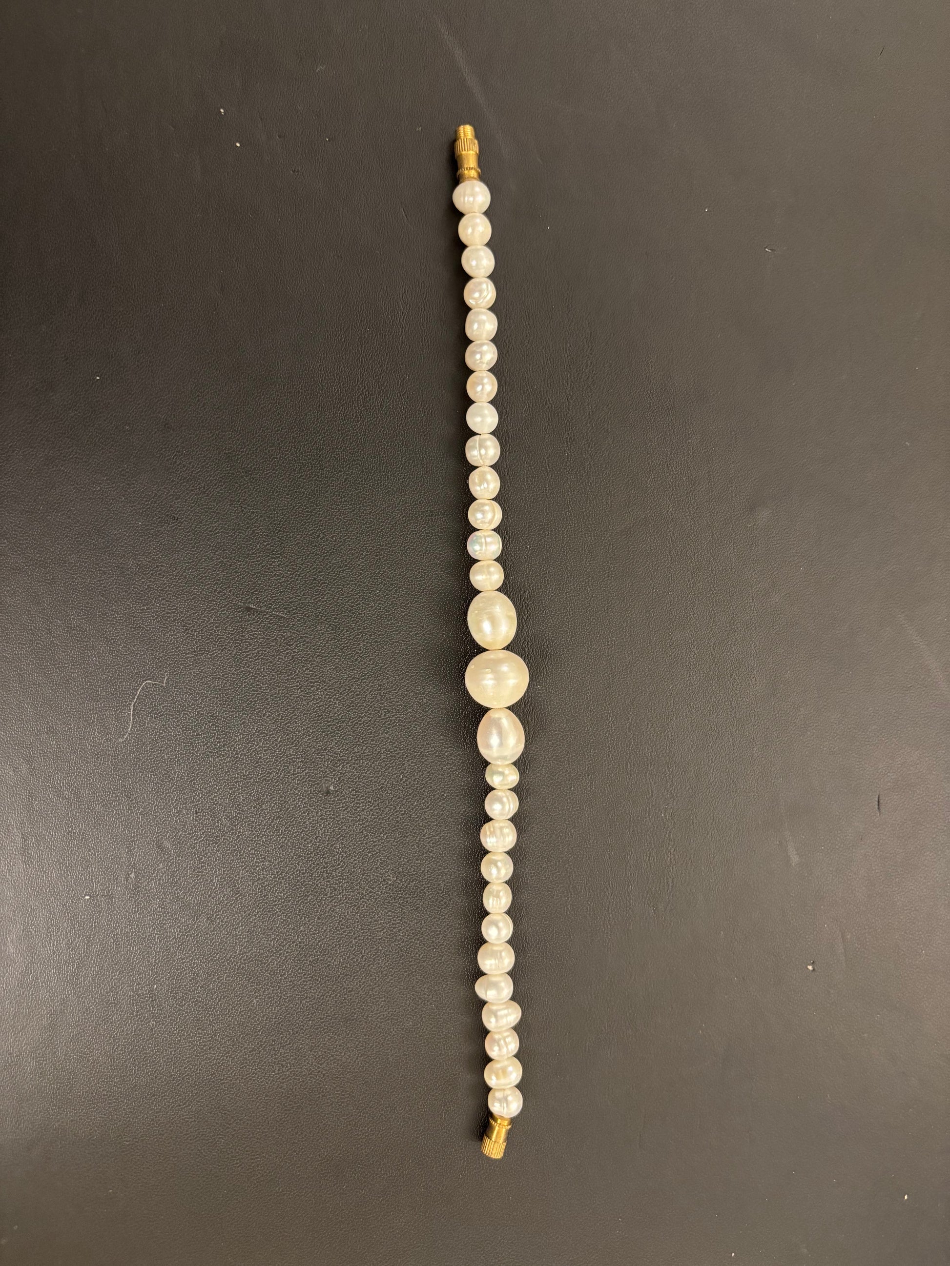 · These bracelets features a delicate fresh water pearls in different sizes of 6 mm, 8mm and centrally placed 10 mm white pearls, beautifully complemented and elegantly places to each other.